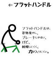 またフラットハンドルは、状態が起きてしまう姿勢になりやすく、動員できる筋肉が比較的少なくなりやすい傾向があります。