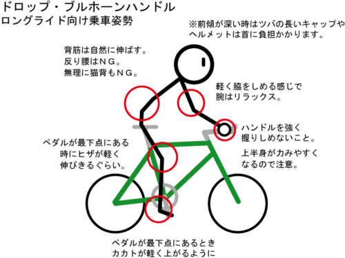 姿勢の維持が楽!ドロップハンドルはロングライドに効率的。
