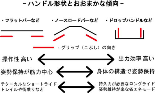今回はハンドルの形状が乗り方に与える影響を簡単にご説明しましょう。